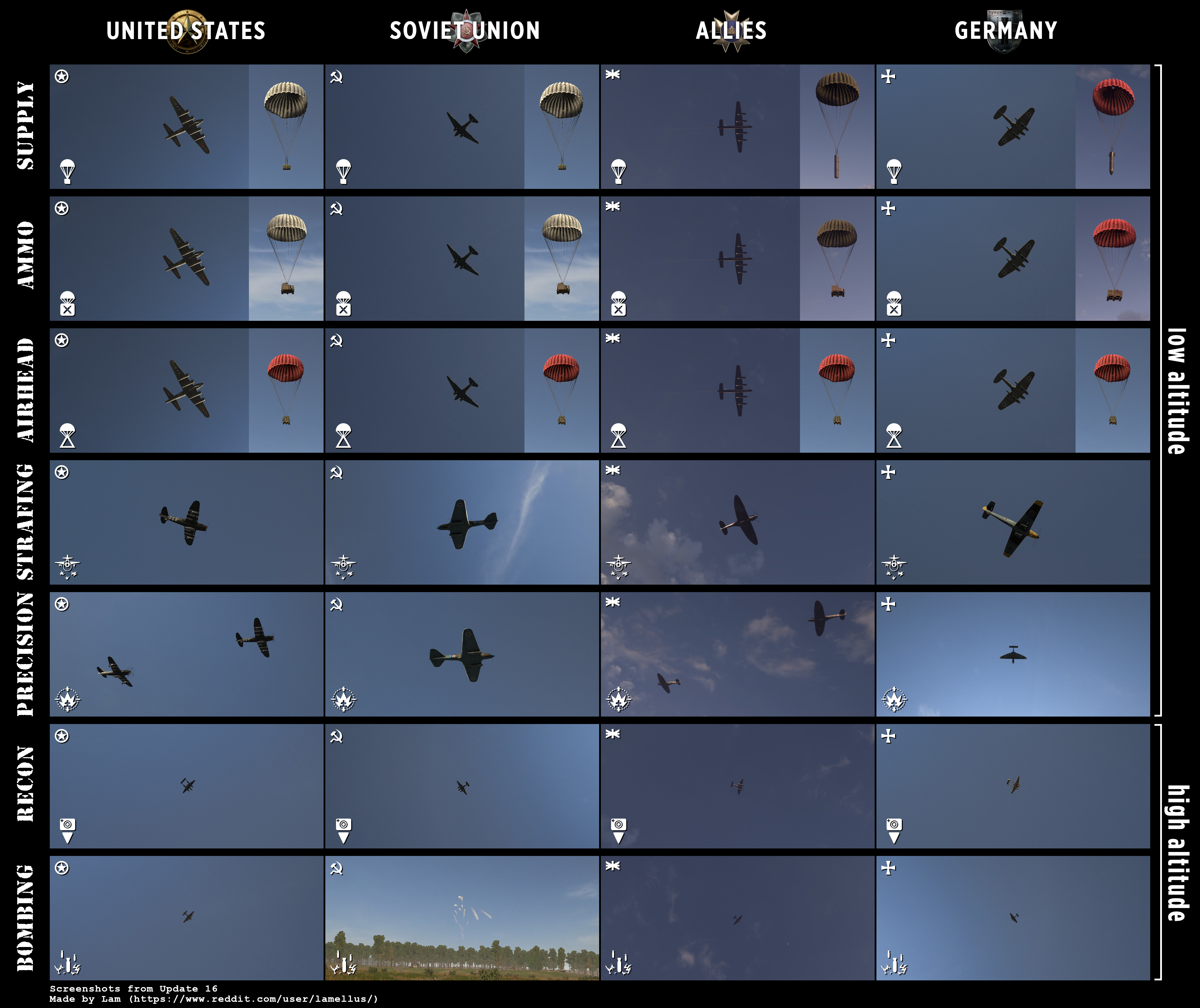 Here is a video overview by GebatronGaming of air support comparison between US and Germany teams.